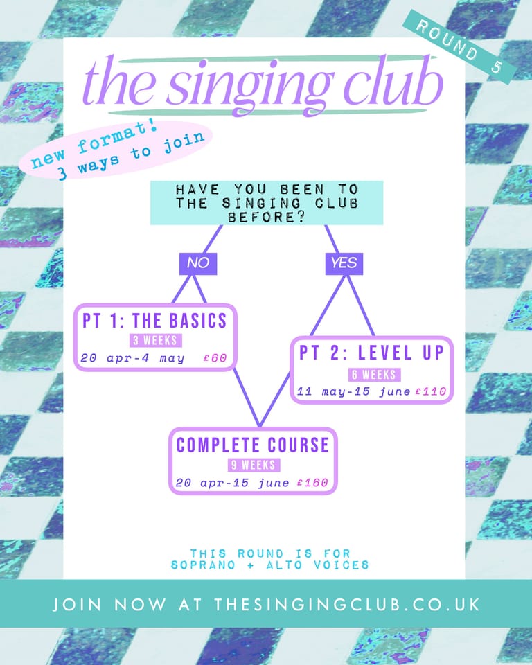 if you haven't been to The Singing Club before, please consider PT1 - The Basics, or The Complete Course!